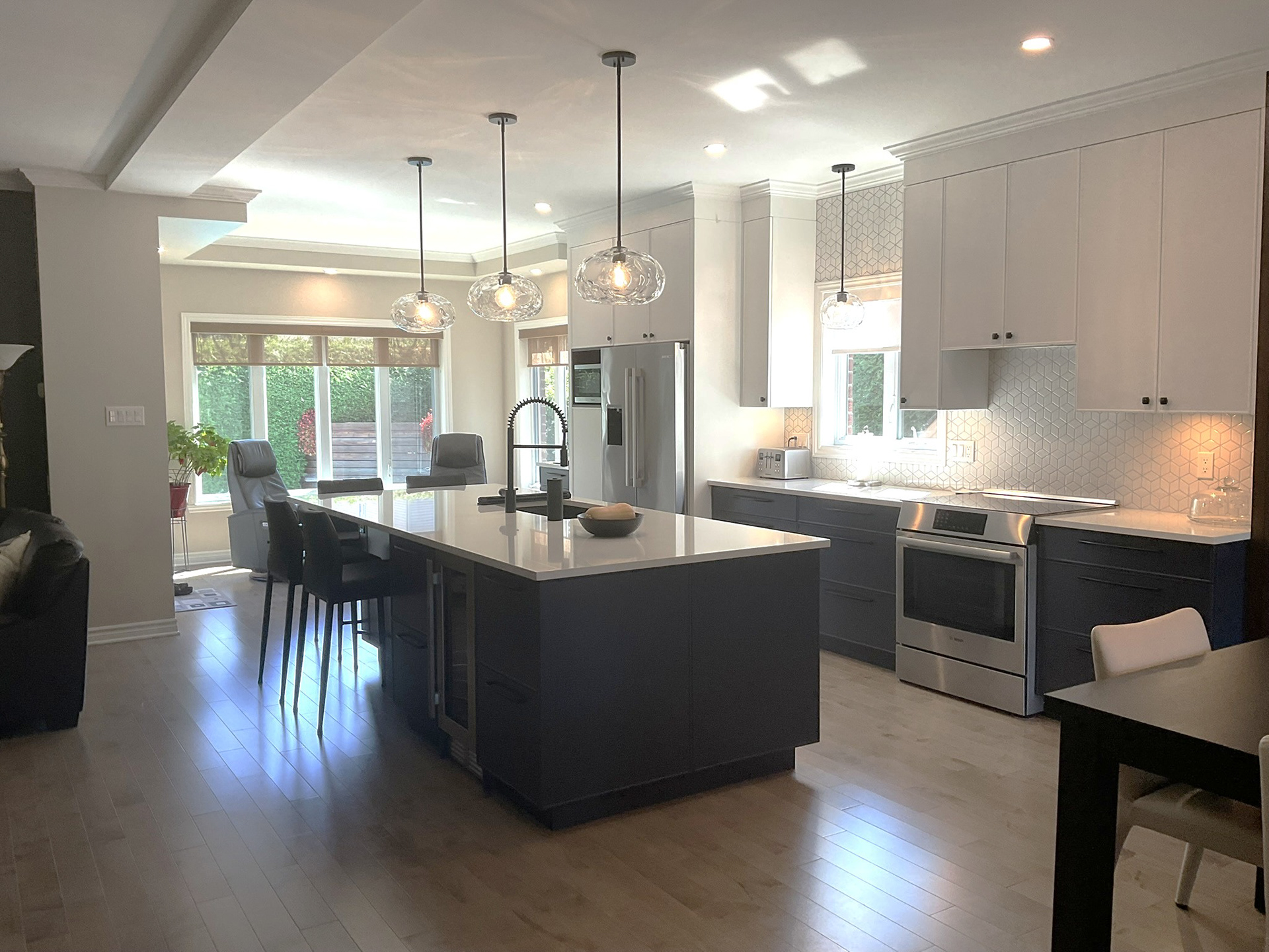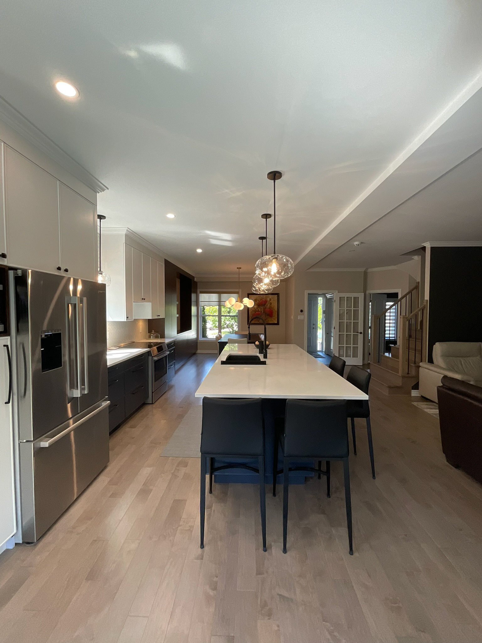 L’ouverture de l’espace, rendue possible grâce à l’ajout d’une poutre de soutien, a totalement transformé cette cuisine autrefois encloisonnée. L’unification des volumes a permis de créer un vaste espace lumineux et convivial, idéal pour recevoir et cuisiner en famille.